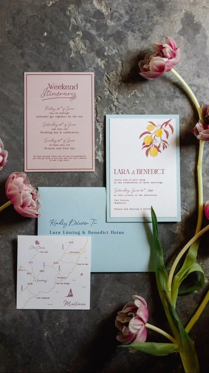 At Wildflower Estudio, we create elevated wedding invitations that celebrate the tactile beauty of traditional paper stationery, blending it with a modern touch. The result is a wedding suite that will never be forgotten—a keepsake of treasured items that guide your guests on the day and evoke cherished memories for years to come.